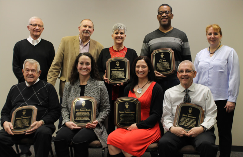 From left, Joe Linderman; Mimi Copp Johnson, representing Charlie Copp; Donna Werner Trexler; Don Sechler; Dan Lorah, representing Bill Kline; Bob Birmingham; Lisa Auman; and Matt Ecker, representing Dick Sherry.